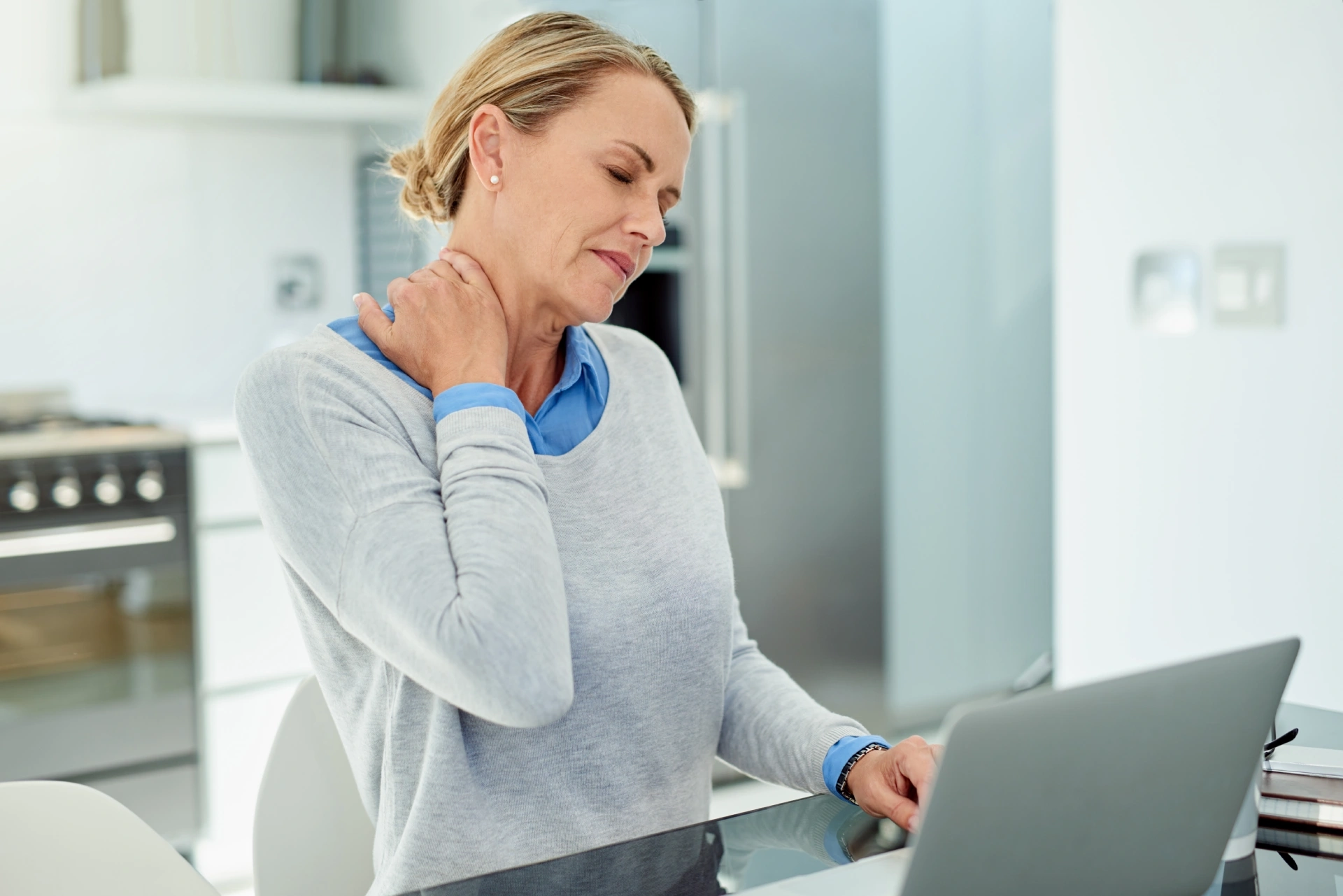 Sitting for long periods aggravates head and neck structures. Regular movement breaks reduce stiffness and protect the cervical spine.